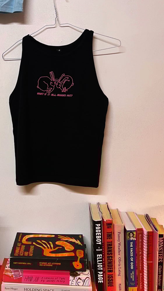 Hello friend!!! As you might already know, I run my shop completely solo from my bedroom with v limited storage space, so I'm only able to keep a small amount of the most popular sizes in stock. Doing a hybrid ready to ship/pre-order system helps me minimise waste, ensures that I can be as size inclusive as possible, and means I don't have to live in a bedroom overflowing with vests lol ๐ต๐ซ Thank you so much for supporting me and my art ๐๐ฅน